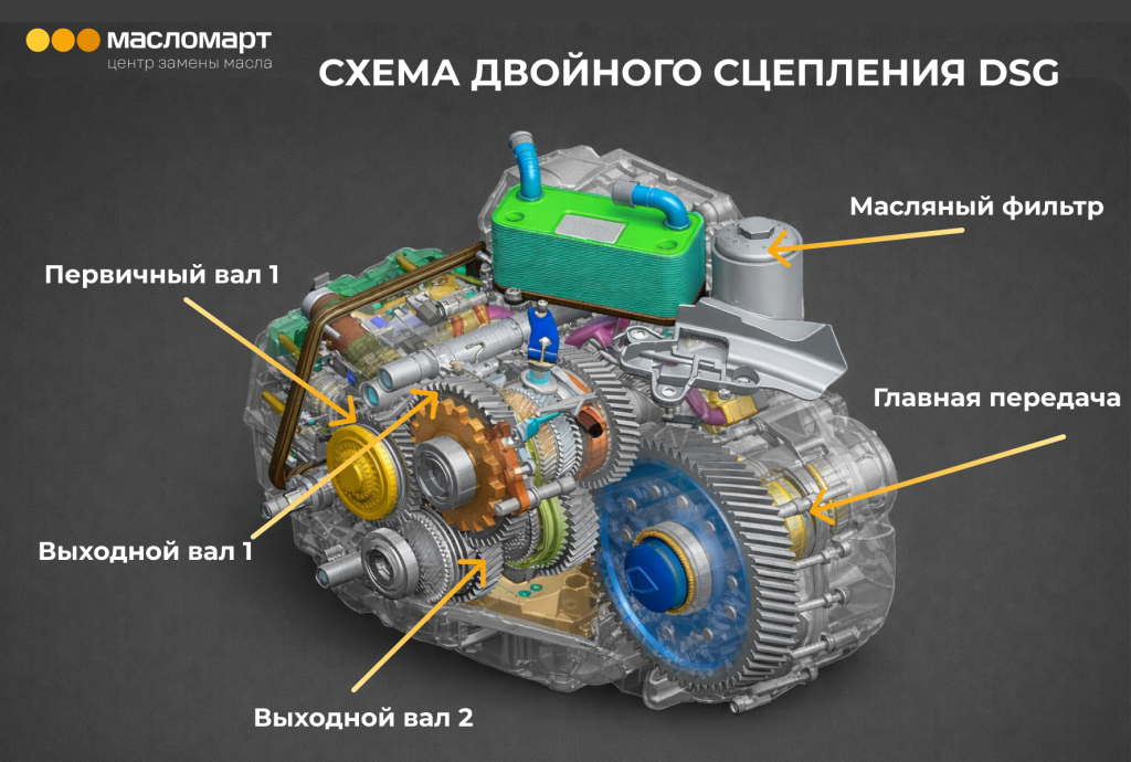 Роботизированная трансмиссия — это продвинутая механическая коробка. Передачи здесь переключает сложный гидравлический блок управления (мехатроник). Система использует двойное сцепление: оно бывает «сухим» (как у ранних DSG-7) и «мокрым» (например, DSG-6), где пакеты фрикционов плавают в масляной ванне.