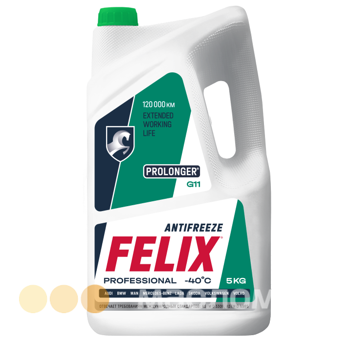 Антифриз FELIX® PROLONGER® представляет собой жидкость охлаждающую низкозамерзающую на основе этиленгликоля и специально очищенной воды, не содержащую аминов, фосфатов и боратов. Разработан по гибридной технологии, содержит в себе набор силикатных присадок.