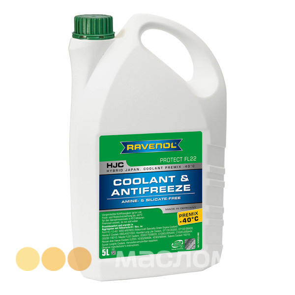 RAVENOL HJC Protect FL22 Premix -40°C – готовый антифриз зеленого цвета на основе этиленгликоля, не содержит силикаты и амины. Обеспечивает долговременную (до 3 лет) антикоррозионную защиту алюминиевого двигателя как зимой, так и летом. Не опасен для окружающей среды.