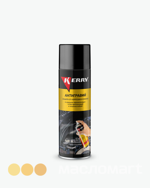 Антигравий KERRY® обеспечивает долговечную антикоррозийную защиту днища, крыльев, нижней части бамперов, колесных арок и порогов автомобиля. Защищает поверхность от летящих камней, создающих интенсивную абразивную нагрузку, воздействия дорожной соли и агрессивных веществ. Образует прочное эластичное покрытие, устойчивое к перепадам температур. Не растрескивается и не отслаивается на морозе. Обладает хорошей адгезией и звукоизоляционными свойствами. Быстро сохнет. После высыхания покрытие может быть окрашено большинством типов эмалей.