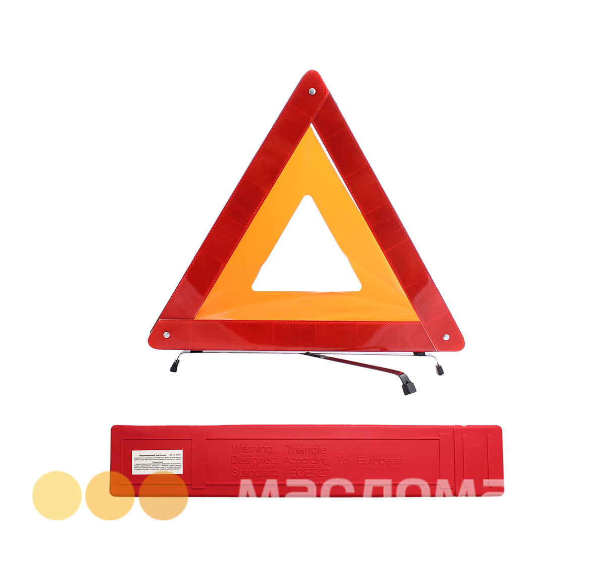 Треугольный, с отражением. Металлическое основание повышает устойчивость знака на дорожном покрытии. Компактно складывается. Для хранения предусмотрен специальный футляр.