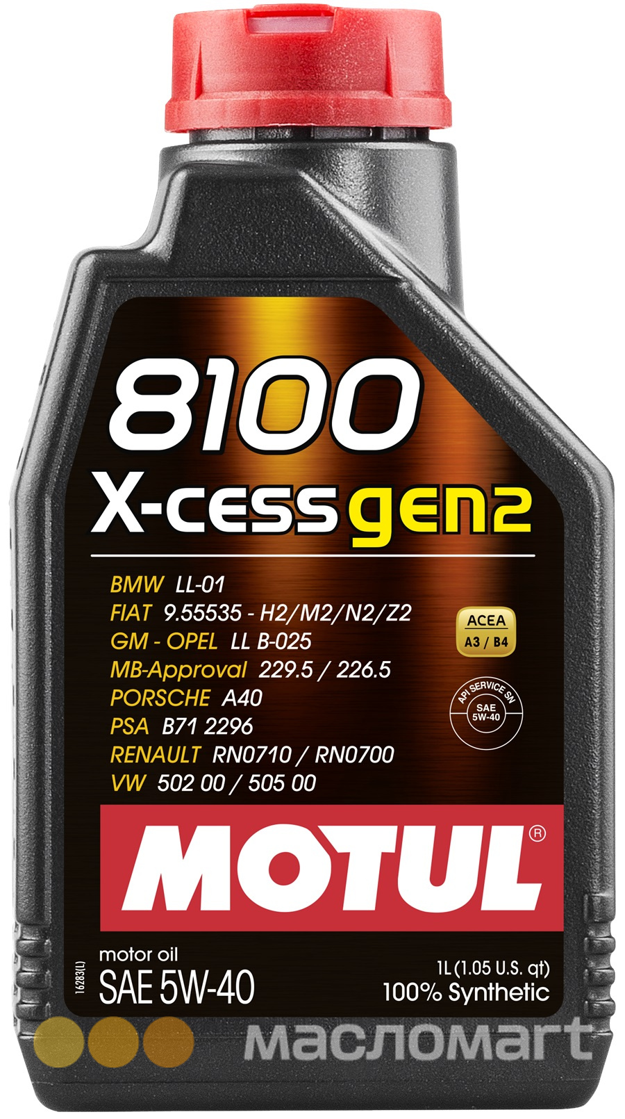 Высокотехнологичное 100% синтетическое моторное масло, специально разработано для современных бензиновых и дизельных двигателей легковых автомобилей, обладающих большой мощностью и объемом, т.ч. оснащенных турбонаддувом и непосредственным впрыском. MOTUL 8100 X-cess gen2 5W-40 имеет одобрения автопроизводителей, что позволяет применять его и в гарантийный период обслуживания. Предназначено для двигателей, работающих на любом типе топлива: бензин, дизельное топливо, сжиженный нефтяной газ (LPG), этанол, биодизель.