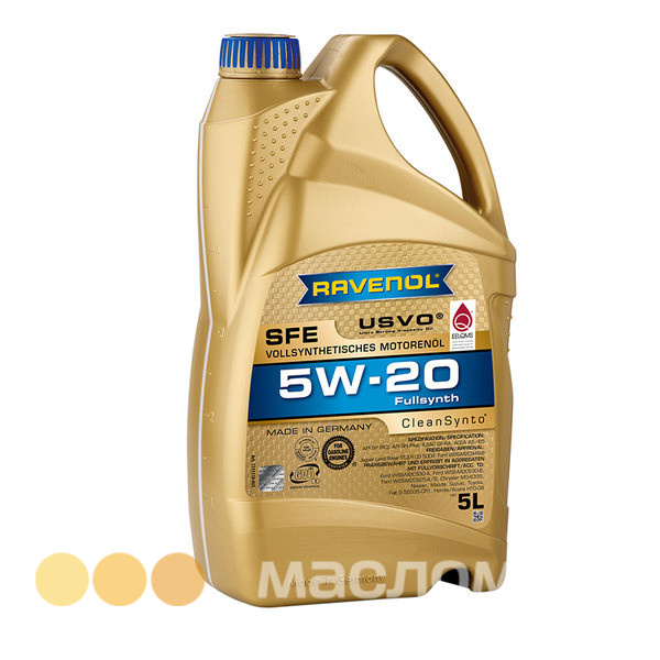 RAVENOL SFE SAE 5W-20 – полностью синтетическое моторное масло на основе полиальфаолефинов (ПАО), изготовленное с применением технологий USVO® и CleanSynto® для легковых бензиновых и дизельных моторов с и без турбонаддува и прямым впрыском топлива.